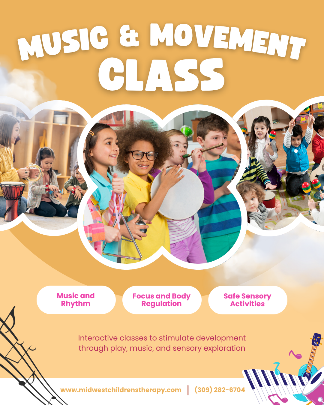 Join us for 30-minutes of Music & Movement class followed by a private 30-minute open gym. Sing, move, clap, and play with purpose! This music & movement class is led by a music therapist and designed to support your child’s development through joyful, engaging play. Music and movement help boost speech & language, coordination, social skills, attention, and emotional regulation—all while your child is having fun.