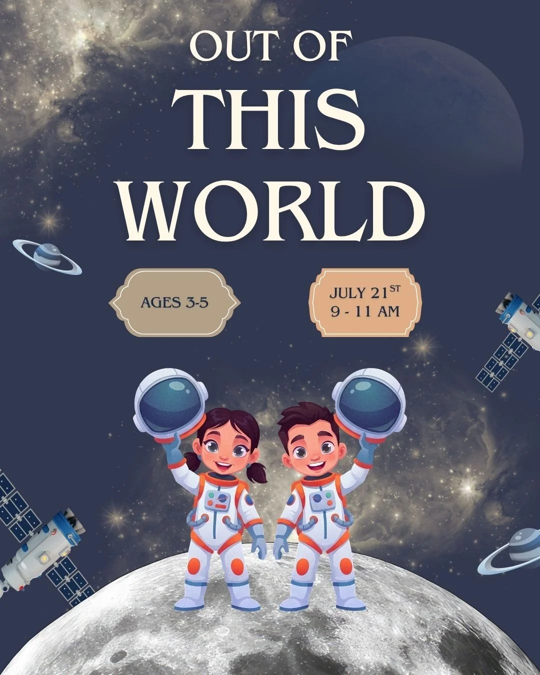 This space-themed group invites children to explore planets, rockets, and galaxies. Young astronauts will listen to “Roaring Rockets”, fuel up on a snack inspired by the moon and the stars, make their very own cosmic creations of spaceships, and launch their own rockets.
