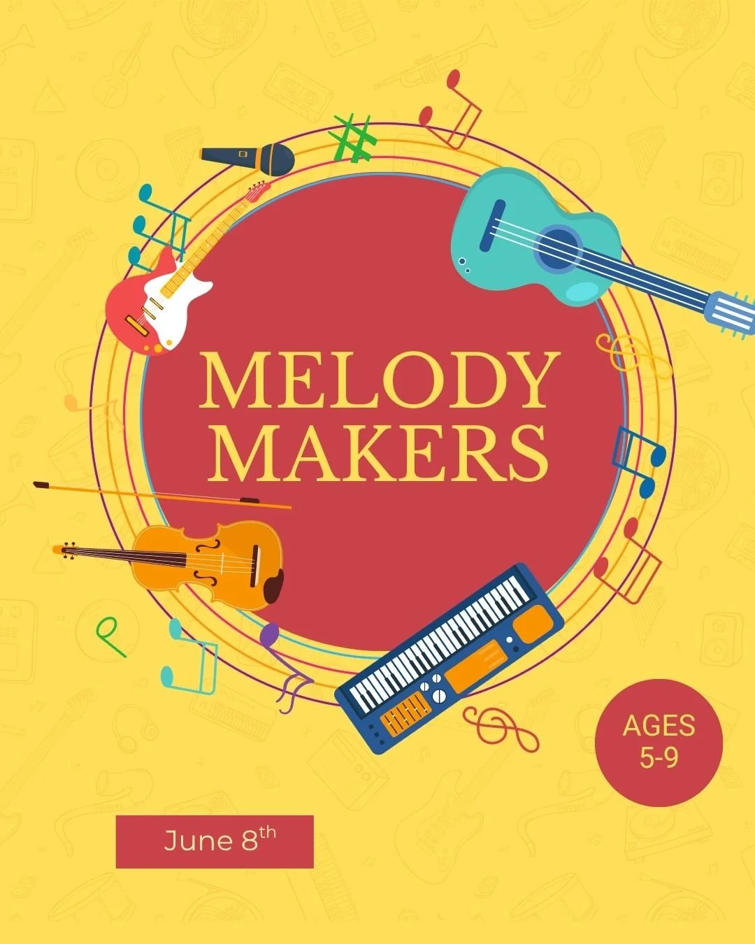 We will also learn simple dances (e.g., the Electric Slide), create our own songs and complete a craft using everyday items and recyclables to make our own instruments.