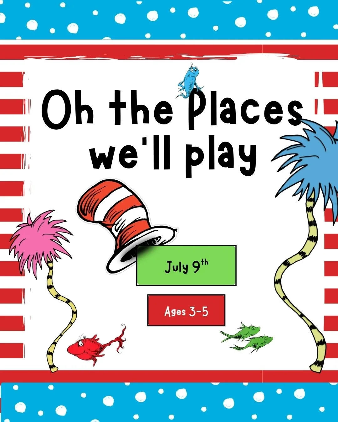 With stories and sillies and colors so bright, Dr. Seuss adventures are such a delight! From Cat in hats to Things that play, We’ll learn and laugh the Seuss-y way!