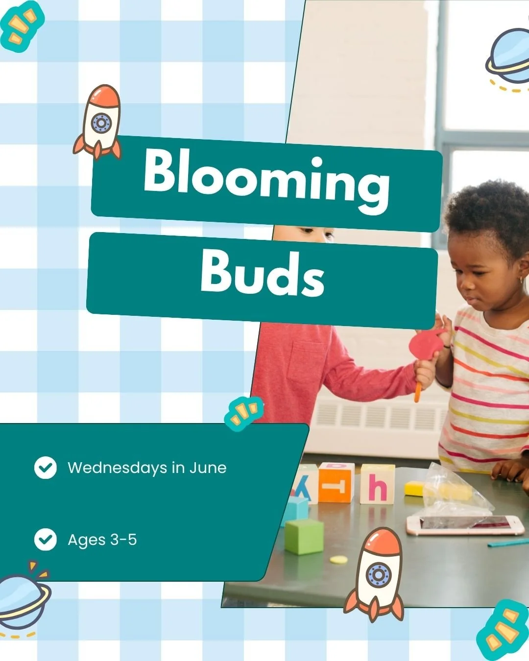 Through guided play activities, children will learn and practice important skills such as turn-taking, sharing, communicating needs and ideas, and interacting positively with peers. Each session includes a themed book and craft, a mix of free play and structured games or activities, and adult-supported interactions to help children build confidence and strengthen their social connections.